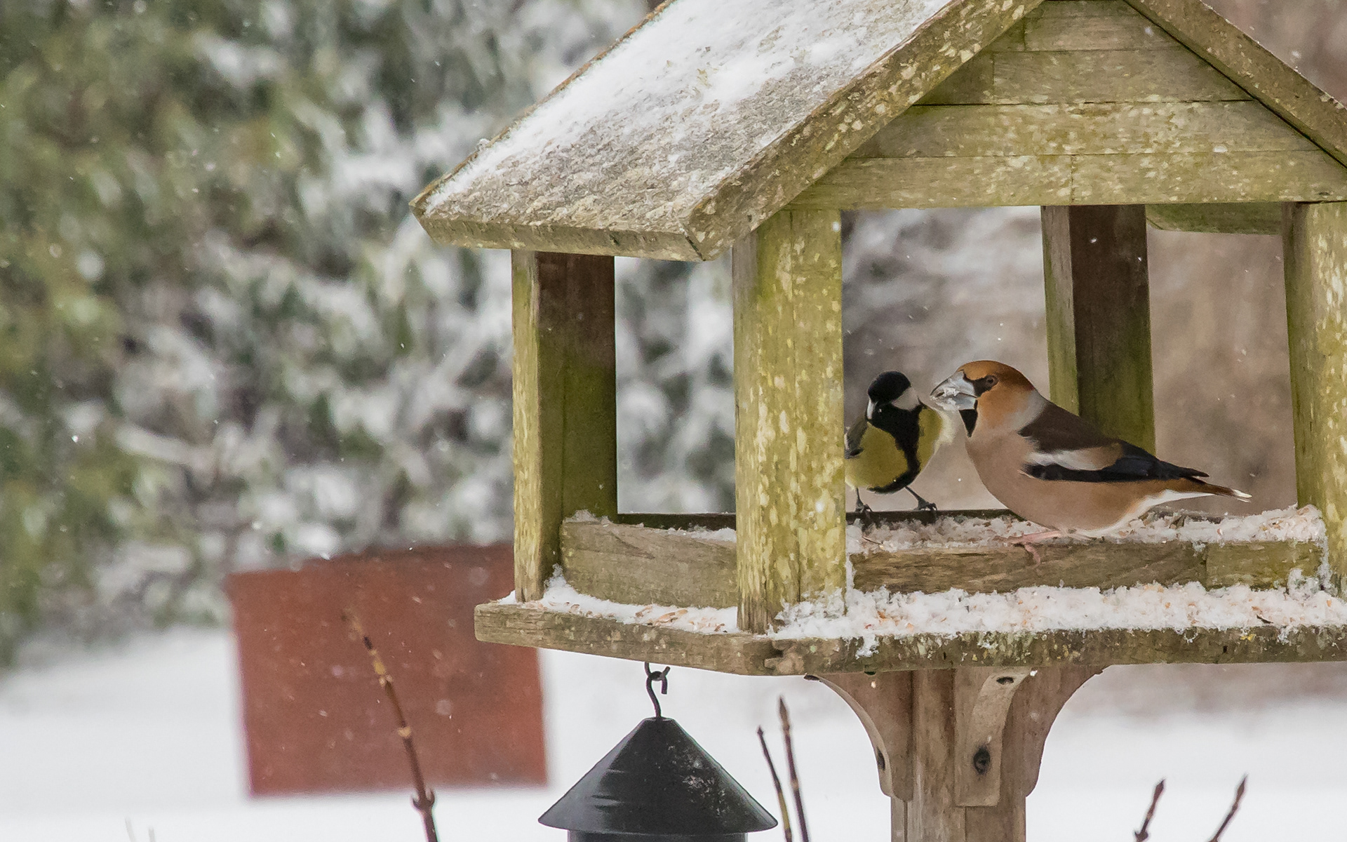 Kernebider ved foderbrættet